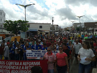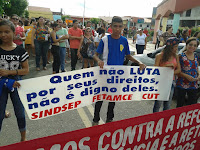 Hoje 28 de abril de 2017 pela manhã Mombaça se mobilizou nas ruas em apoio a Greve Geral do Brasil, em passeada funcionários de diversos tipos, cidadãos com faixas e cartazes desfilaram nas ruas de Mombaça em apoio as reivindicações. Segue fotos: Navegação de Post MOMBAÇA: Hospital falta material e tem péssimo atendimento Mombaça On-Line completa 1 mês de atividade