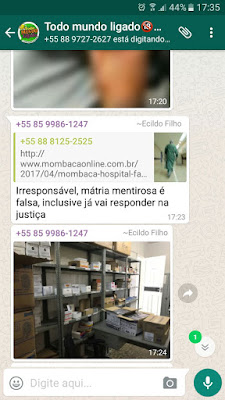 Filho comenta em grupo do WhatsApp que processará o Site Mombaça On-line