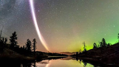 Eric Donovan, professor da Universidade de Calgary, identificou a coluna de luz violeta em uma série de fotos compartilhadas no Facebook. A princípio, foi definido como um arco de prótons. Mas Donovan descartou a hipótese ao avaliar que não seria possível ver isso a olho nu.
