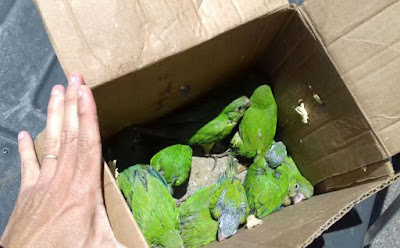 Uma caixa de papelão contendo dez periquitos da caatinga foi deixada no local. Os animais foram encaminhados ao Ibama em Sobral para as devidas providências.