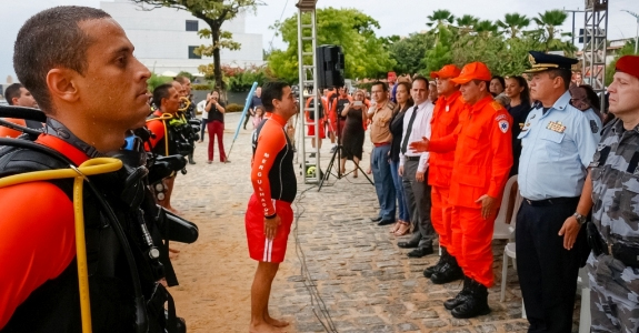As vinculadas da SSPDS – Academia Estadual de Segurança Pública do Ceará (AESP/CE) e o Corpo de Bombeiros (CBMCE) – realizaram, nesta segunda-feira (29), a Solenidade de Encerramento do Curso de Mergulho Autônomo (CMAUT). O evento aconteceu na Praia Formosa, e contou com demonstrações de mergulho no mar. A qualificação, que é uma das mais importantes e tradicionais dos corpos de bombeiros no Brasil é conhecida pelo alto grau de dificuldade.