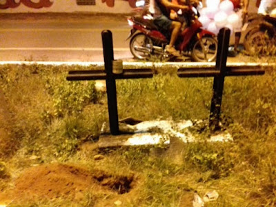 Os militares ao chegarem no local foram informados por componentes da equipe do SAMU que na noite deste sábado(06), por volta das 23h, um casal estava cavando um buraco em um local que possui duas cruzes fincadas. Após colocar no buraco um saco plástico, os dois saíram a pé, tomando rumo ignorado.