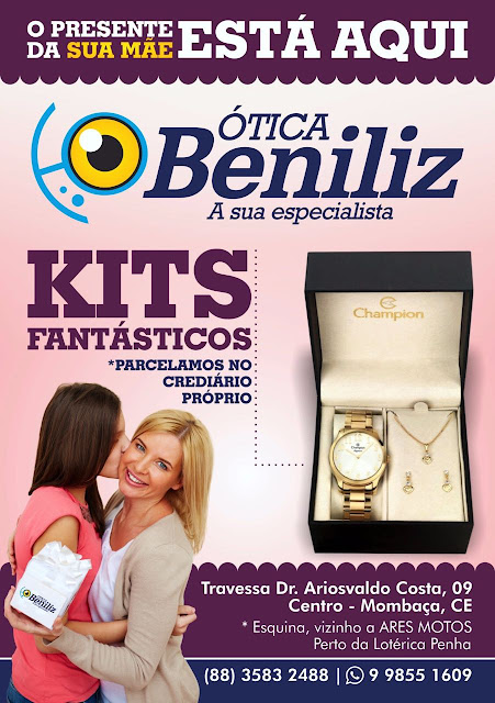 A Ótica Beniliz está com uma super PROMOÇÃO para o dia das mães! E se você quer presenteá-la, estaremos sorteando um lindo RELÓGIO, dia 12 de maio no programa ‘É só pedir’ da RÁDIO CENTRAL FM.