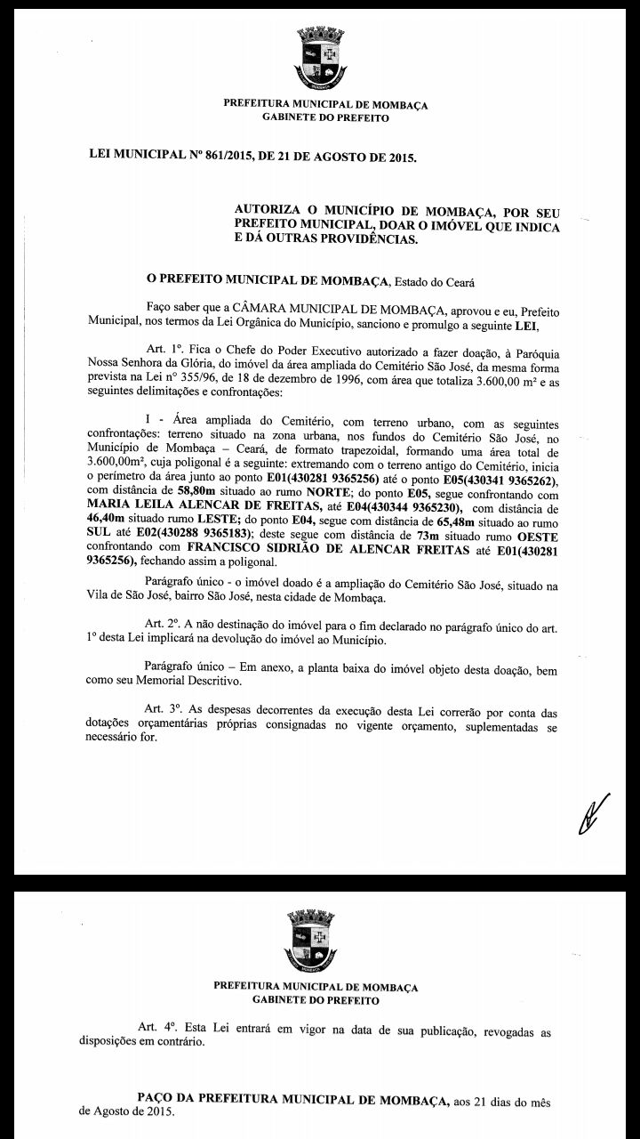 Ainda em nota, a assessoria nos mandou o documento onde a doação do terreno foi sancionada desde a data de 21 de Agosto de 2015.