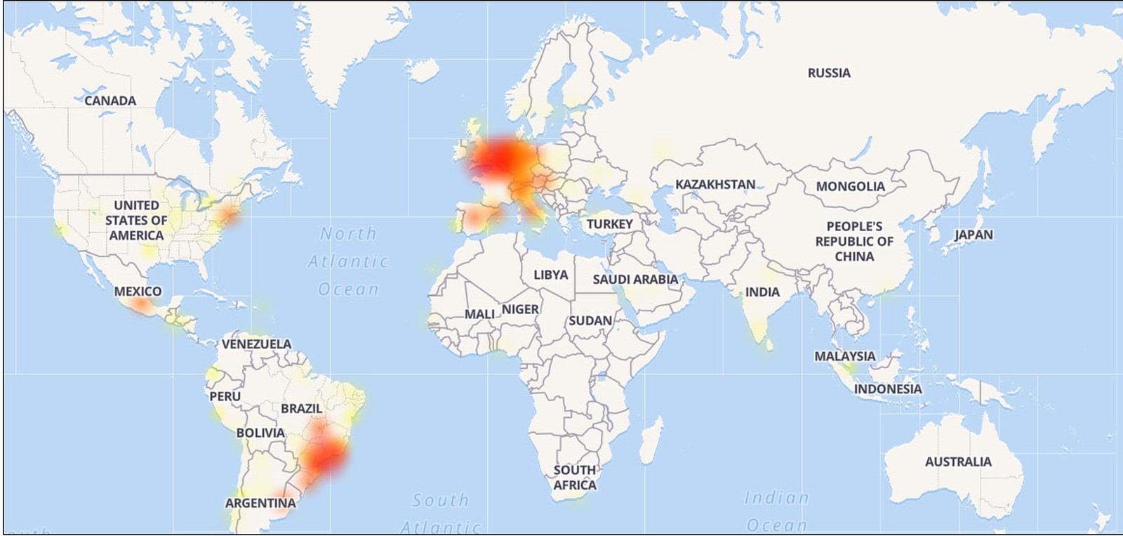 O site Down Detector, que agrega relatos sobre conexão de sites e aplicativos, mostra que as reclamações começaram a aparecer por volta das 13h. Um mapa feito pela página mostra que os problemas se concentram no Brasil e em países da Europa.