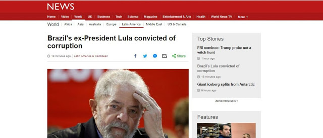 Poucos minutos após o anúncio da condenação do ex-presidente Luiz Inácio Lula da Silva a nove anos e meio de prisão por corrupção passiva e lavagem de dinheiro, a mídia internacional já repercutia o veredicto.