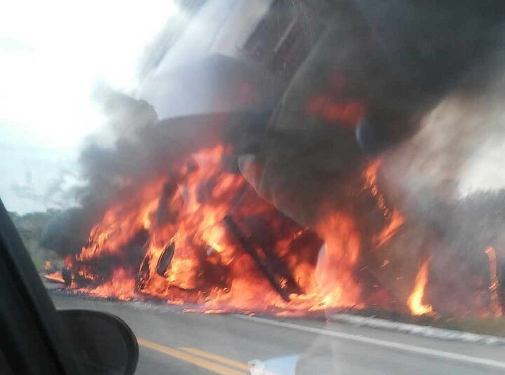 A carcaça em chamas do veículo foi deixada no acostamento do quilômetro 121 da BR-116. O trânsito flui normalmente no trecho, mas a Polícia Rodoviária alerta que os motoristas dirijam com cautela nas proximidades do local do acidente.