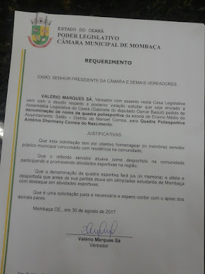 Vereadores estiveram na Sessão Extraordinária do último dia 31 de agosto de 2017 solicitando projetos e cobrando pautas importantes antes já debatidas. Estes são alguns dos requerimentos apresentados: Navegação de Post ULTRAGAZ: A ENTREGA MAIS RÁPIDA DA CIDADE! MOMBAÇA: ASSALTANTE É PRESO E COMPARSA CONSEGUE FUGIR