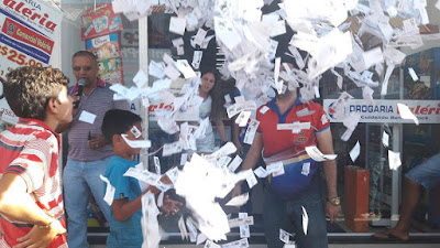 A promoção que contemplava os clientes da Drogaria Valéria, da Comercial Valéria e da Valéria Modas que adquirissem produtos a partir de 25 reais contou com a participação de aproximadamente 14 mil cupons e teve como premiada a cliente Antonia Alves Rodrigues, residente na Av Beira Rio.