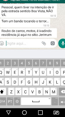 Fomos informados de que bandidos armados e em grupos estariam fazendo assaltos de motos, carros e pertences de vítimas. Eles estariam agindo nas redondezas do Sitio Betania e os próprios moradores emitiram alertas para que as pessoas que fossem ao sentido de Boa Vista evitassem o trajeto.