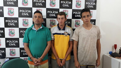 No suposto ponto comercial foram encontrados os senhores Francisco Timóteo Teixeira, 23 anos, o qual já responde por roubo aqui mesmo em Mombaça, juntamente Antonio Wagner Duarte da Costa, 28 anos, com uma extensa ficha criminal na cidade de Santa Quitéria, e o senhor Felipe Nascimento Souza, 19 anos, sem antecedentes.