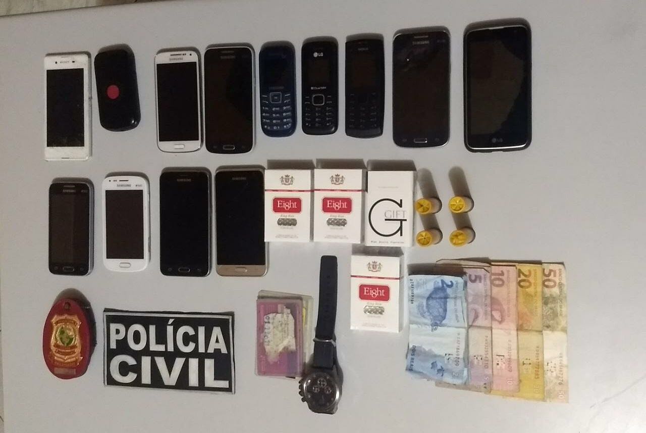 Sendo feitas vistorias no estabelecimento onde os assaltantes estavam os policiais encontraram diversos celulares, algumas munições de espingarda calibre 20 e algumas carteiras de cigarro importados ilegalmente.