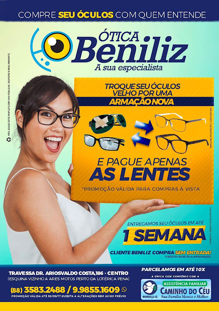 Cliente Ótica Beniliz compra sem entrada com a primeira para 30 dias!