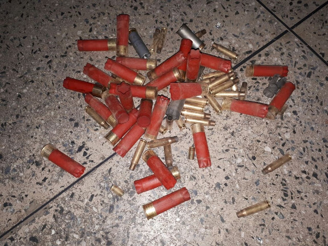 Na cidade foram encontradas várias cápsulas deflagradas de fuzil 7,62, pistola 9 milímetros e calibre 12. No banco também haviam cápsulas de calibre 12, fuzil 7,62, e Ponto 40.