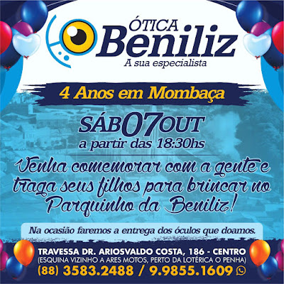 ISSO MESMO!!! A sua especialista vem trazendo novidades, e dessa vez no aniversário de 4 anos da ÓTICA BENILIZ que já é nome e tradição em nossa cidade terá um SUPER PARQUINHO para as criançada!