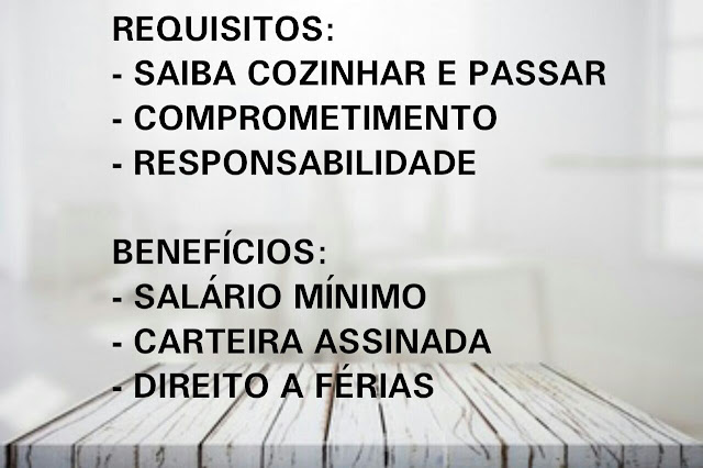 Temos uma oferta de emprego para você de Mombaça, que esteja interessada em ser secretária do lar… PARA MAIS INFORMAÇÕES: (88) 9 9748 0304 (FALAR COM MAZÉ) Navegação de Post MOMBAÇA: Tem situação de emergência decretada pelo Governo Estadual e mais 48 cidades ALEXANDRE MOTO PEÇAS: A MAIS COMPLETA DE MOMBAÇA!