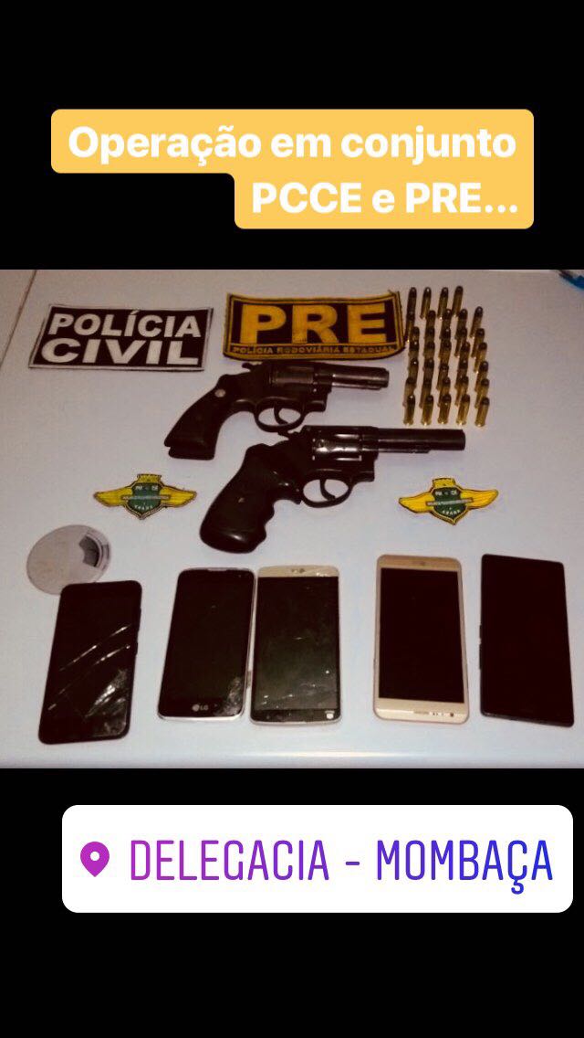 Com os mesmos foram apreendidos: dois revólveres, 38 munições calibre 38, entre celulares.