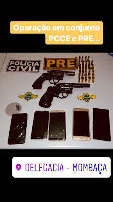 Na noite de ontem(31), em uma ação da PRE (Policia Rodoviária Estadual) na CE 060 foram abordados quatro indivíduos, em poderes de armas de fogo, a PRE informou a Polícia Civil, onde o delegado Dr Helder Beserra, juntamente com sua equipe em diligência e ação conjunta com a PRE acharam um quinto indivíduo. Em conversa na Delegacia um deles admitiu que os mesmos estariam escondidos na cidade de Mombaça se preparando para um grande assalto, inclusive na cidade de Senador Pompeu.
