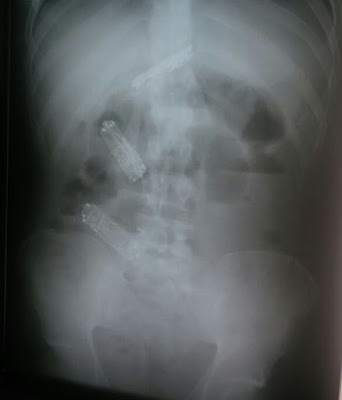 No entanto, depois de uma semana, ele não obteve sucesso em seu plano e estava sentindo fortes dores em sua barriga. Ele foi encaminhado à Santa Casa de Presidente Bernardes, onde um exame de raios-X constatou os três aparelhos em seu estômago.