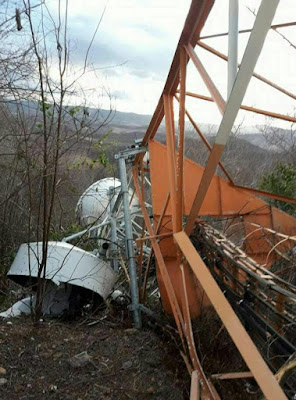 Ouvintes encaminharam ao Sistema Maior de Comunicação imagens da torre de transmissão do sinal da operadora Vivo, que veio a baixo no último sábado, 20, após fortes ventos na Serra da Mutamba, em Santa Isabel, no Distrito de São Miguel, em Quixeramobim.