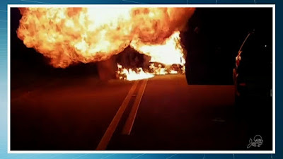 Nas imagens, é possível ver o fogo consumindo os veículos. Um dos condutores sofreu queimaduras de segundo grau e foi levado para o Instituto Dr. José Frota (IJF), em Fortaleza.