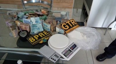 Chegando ao local, foram encontradas mais 500 gramas de cocaína. O traficante já tem várias passagens por roubo, porte ilegal de armas, associação criminosa e estava com mandado de prisão em aberto. Foram apreendidas, no total, 650 gramas de cocaína, três balanças de precisão e a quantia de R$ 20 mil.
