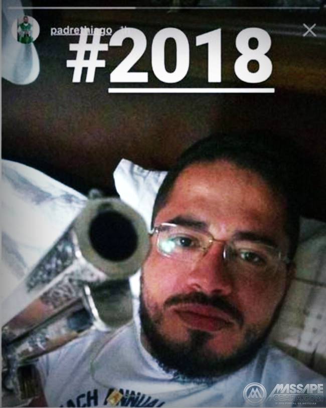 A foto do Padre Thiago Bruno em posse de uma “arma” circula pelas redes sociais e causou polêmica na cidade de São Jose do Quatro Marcos (308 km de Cuiabá). O padre é da Paróquia da cidade e postou a foto no ‘status’ do seu Whatssap.