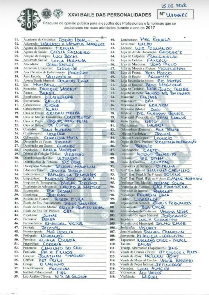 Pelo XXVI ano consecutivo o LEO CLUBE MOMBAÇA CENTRO, realiza uma pesquisa de opinião pública que tem como intuito divulgar as empresas e profissionais liberais que mais se desempenharam em seus trabalhos no comércio e no cotidiano mombacense.