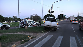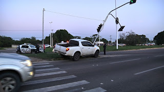 Ao parar no semáforo, um dos suspeitos desce do carro e vai em direção ao veículo da vítima. Pelo menos quatro tiros são disparados. O motorista da L 200 tenta sair com o veículo, mas acaba colidindo com o poste do semáforo.