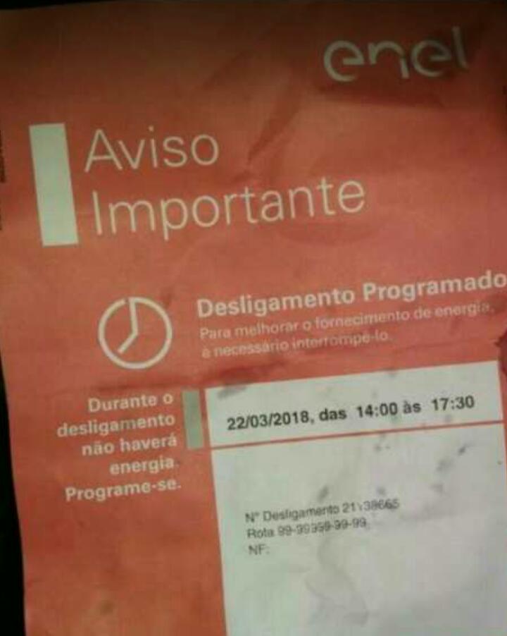 A imagem de um papel falando sobre um desligamento programado de energia, na tarde de hoje (22/03/2018), na cidade de Mombaça, é falso!