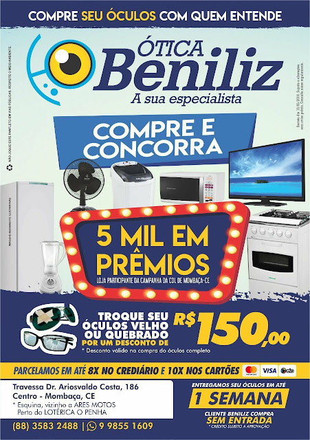 Atendimento sexta-feira! ⚠ Recebemos sua armação antiga por um desconto de 150,00 ⚠ Entregamos seus óculos em até uma semana ⚠ Cliente Beniliz compra sem entrada com a primeira para 30 dias ? Concorra ao sorteio de 5 MIL em prêmios ? Navegação de Post ATENÇÃO: VAGA DE EMPREGO (VENDEDORA COM EXPERIÊNCIA) EM MOMBAÇA: SECRETARIA DA JUSTIÇA SUSPENDE VISITAS NA CADEIA PÚBLICA!