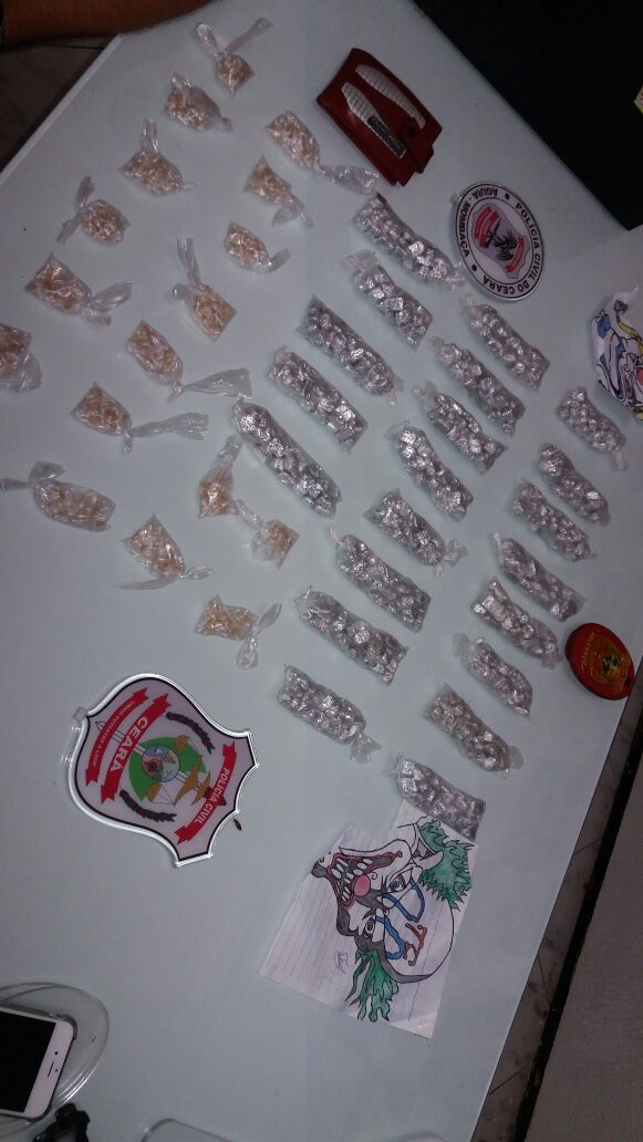 Policiais civis da Delegacia Municipal de Mombaça, na Área Integrada de Segurança 22 (AIS 22), capturaram, nessa quarta-feira (7), dois suspeitos de atuarem no tráfico de drogas em um dos bairros do município. Na ação policial, foram apreendidos vários entorpecentes que seriam comercializados na região. Um inquérito policial em flagrante foi instaurado, e os envolvidos indiciados.