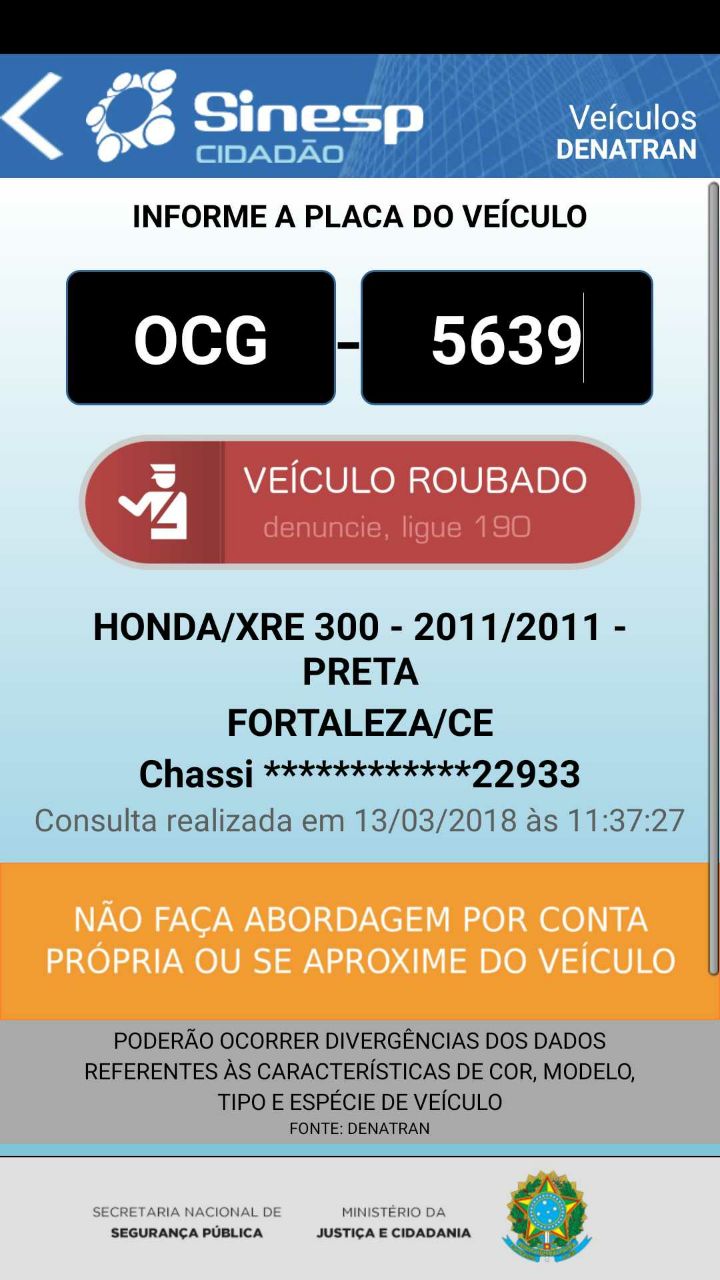 Hoje (14), pela manhã, uma moto que circulava pelas ruas de Mombaça foi apreendida, os guardas municipais que fizeram a apreensão constataram que a mesma seria roubada. A moto tem placa de Fortaleza-CE. Os procedimentos legais serão realizados pela polícia e o condutor terá que prestar esclarecimentos a justiça.