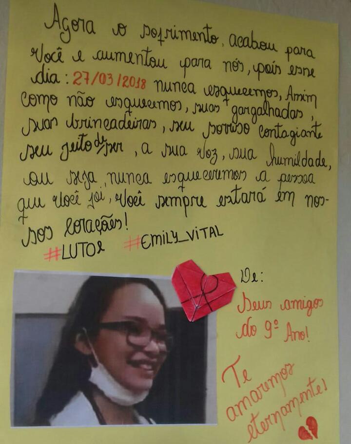 A jovem se foi deixando saudades aos seus familiares e amigos, e também as pessoas que conheceram seu jeito bastante querido e simples de ser!