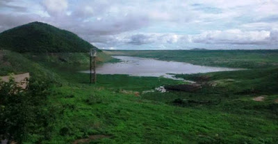 Situada no entorno desta cidade, a barragem, que estava completamente seca desde julho de 2016 voltou a formar uma lâmina d’água em uma considerável extensão, atraindo muitos moradores para o local. Mesmo assim a preocupação continua, considerando-se que o principal manancial de abastecimento, o rio Quixeramobim, é barrado mais acima, onde fica situado o Açude Fogareiro, atualmente com apenas 1,99% do seu volume. O reservatório tem capacidade para 118,8 milhões de m³.