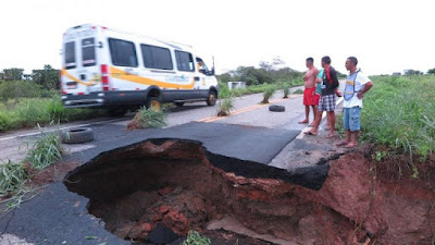 Uma das faixas de tráfego da BR-122, engolida por um enorme bueiro continua causando risco para motociclistas, motoristas e passageiros, principalmente de veículos de maior porte como caminhões e ônibus. O trecho de perigo fica situado à altura do Km 67 da rodovia federal, na localidade de São Paulo, na zona rural de Ibaretama, a cerca de 40Km de Quixadá. A BR é a principal via de acesso para quem circula da capital ao Centro e Sul do Estado.