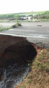 O asfalto da CE que liga Hidrolândia a Santa Quitéria, logo na saída de Hidrolândia também cedeu. Informações dão conta que próximo do local, um açude arrombou, abrindo uma cratera por baixo do asfalto, o local foi interditado e no momento apenas carro de pequeno porte podem passar por um dos lados da pista.