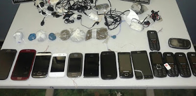 Foram apreendidos uma grande quantidade de celulares, além de drogas.