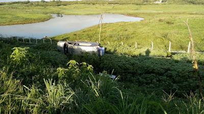 Hoje (03), ainda cedo da manhã, um carro funerário que fazia o translado de um corpo, do sexo feminino para seu velório que seria na cidade de Saboeiro, perdeu o controle, capotou e caiu no açude da localidade de Canudos. O motorista e o outro homem que estava em sua companhia, não sofreram nada grave, sendo socorridos e retirados do veículo.