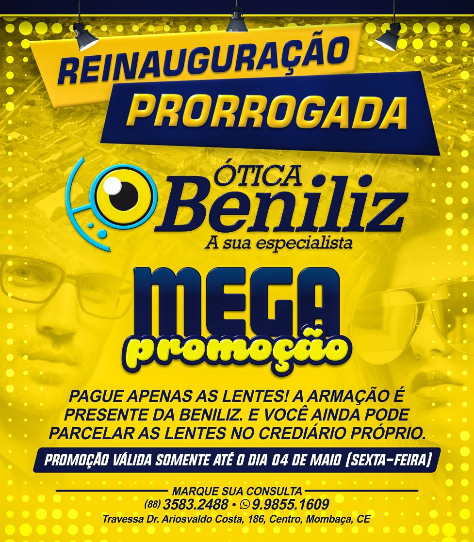 Devido ao grande sucesso de Reinauguração, a Ótica Beniliz prorrogou a promoção! Isso mesmo!!! E para você amigo e cliente que não deu tempo se consultar, ligue e agende, pois amanhã terá atendimento totalmente gratuito! Aproveite essa grande chance que só a BENILIZ nos traz…