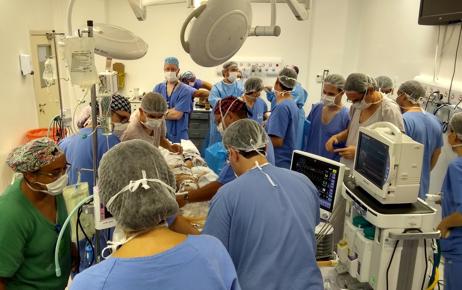 A equipe médica é composta por três cirurgiões plásticos, sete neurocirurgiões, cinco anestesistas, oito enfermeiros, um tecnólogo e o diretor do centro cirúrgico.