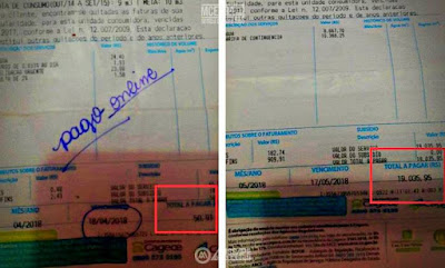 A técnica de enfermagem Brena Oliveira levou um susto ao receber a conta de água neste mês de maio. O valor saltou de R$ 50,91 em abril para exatos R$ 19.035, 95.