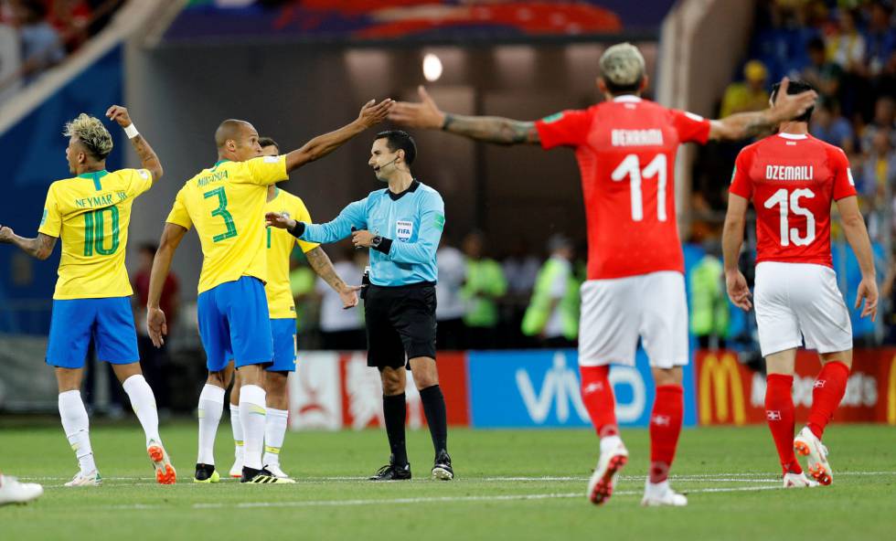O Brasil voltou a reclamar do árbitro mexicano, nos minutos finais, após Gabriel Jesus ter sido agarrado e derrubado na área, mas o árbitro não marcou a penalidade, tampouco solicitou as imagens.