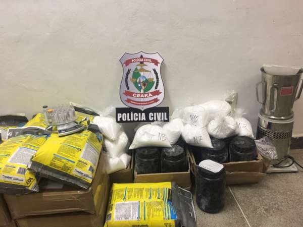 A Polícia Civil do Estado do Ceará (PCCE), por meio de diligências de equipes do 33º Distrito Policial (Goiabeiras), prendeu dois homens suspeitos de distribuir e armazenar 41,4 quilos de mineíta, além de ampolas de lidocaína, substâncias químicas utilizadas para mistura de cocaína. O material foi apreendido com dois suspeitos, que já tinham passagem pela Polícia. A ação policial se desenvolveu na última segunda-feira (18).