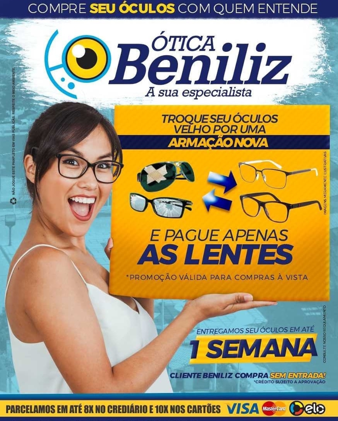 Compre seus óculos com quem entende! Só na BENILIZ você tem essas vantagens… Além de comprar o seu óculos de grau novinho, você pode parcelar no crediário próprio e PAGAR APENAS AS LENTES!