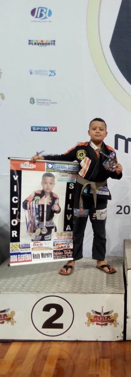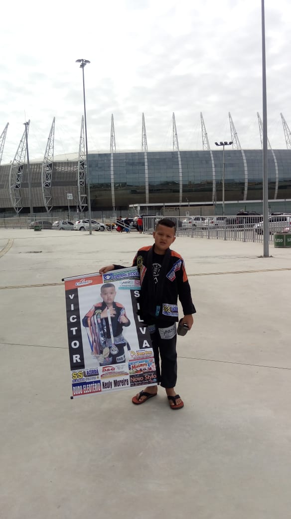 Victor Silva, natural de Mombaça, de apenas 9 anos, já vem de uma longa trajetória na carreira do Jiu Jitsu e estará concorrendo nesse final de semana, dias 25 e 26 de agosto pela 3ª vez no mundial que acontecerá na arenhinha do Castelão em Fortaleza-CE.