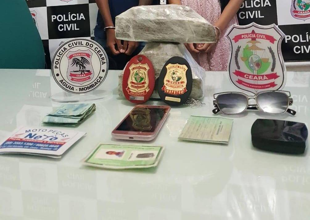 Os dois foram autuados por tráfico de drogas pelo delegado Hélder Bezerra, que revelou que a jovem tinha vindo de Fortaleza em um ônibus interestadual para fazer a entrega da droga em Mombaça.