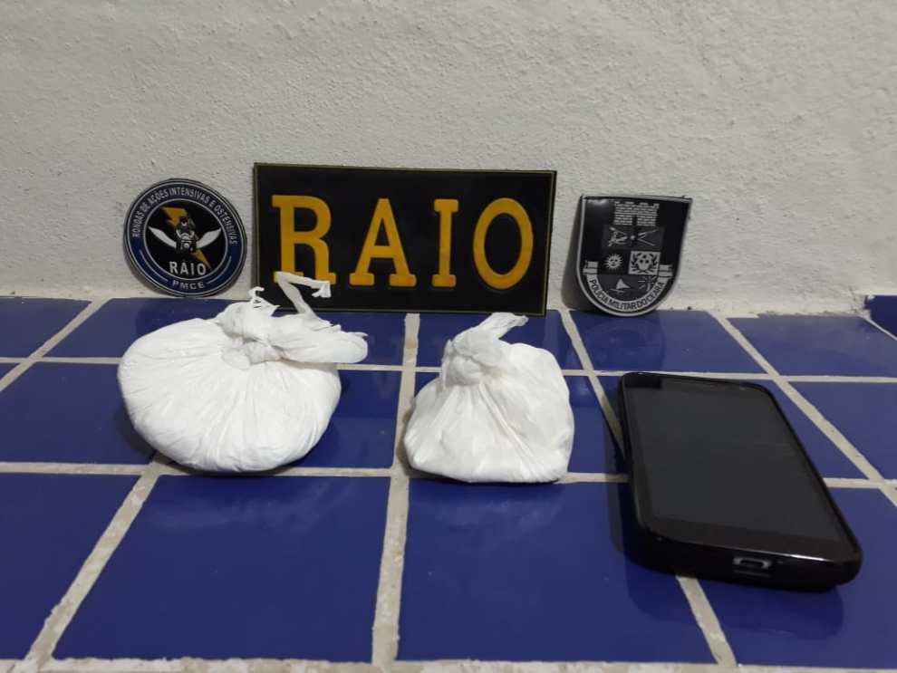 Por volta das 20:00 horas desta quarta(19) a equipe da Vtr Raio 053 estava fazendo deslocamento para um procedimento quando recebeu uma denúncia, de que uma pessoa por iniciais de “A. K. C. S” sendo a mesma menor de idade estaria portando e transportando uma quantidade significante de drogas da cidade de Pedra Branca a Juazeiro do Norte.
