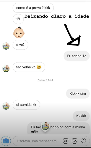 “Converso muito com ela sobre tudo, em não conversar por direct ou WhatsApp com pessoas que ela não conhece. E o celular não tem senha. Pode até colocar uma senha, mas que eu saiba, pois sempre fico olhando, fiscalizo tudo”, diz.