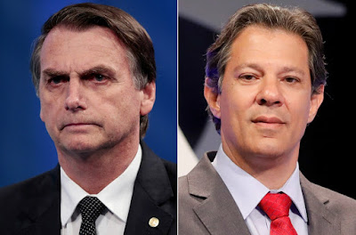 Os candidatos Jair Bolsonaro (PSL) e Fernando Haddad (PT) decidirão no segundo turno quem será o presidente do Brasil pelos próximos quatro anos, segundo os dados de apuração do Tribunal Superior Eleitoral (TSE) divulgados na noite deste domingo (7). Eles disputam a Presidência pela primeira vez.